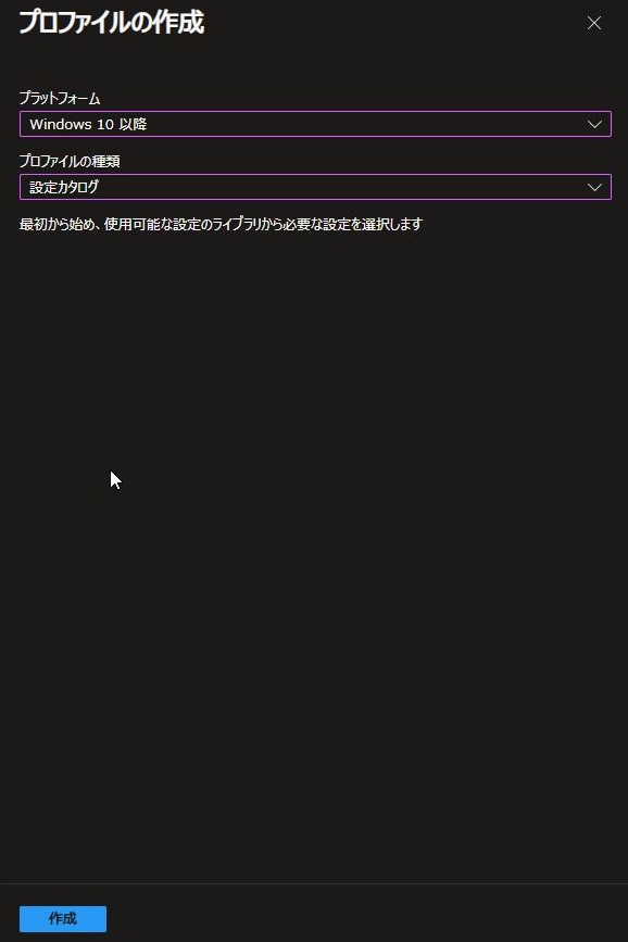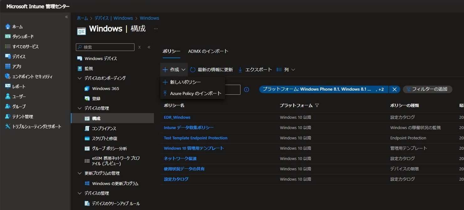 1.Intune管理センターを開き、構成プロファイルの新しいポリシーを作成します。