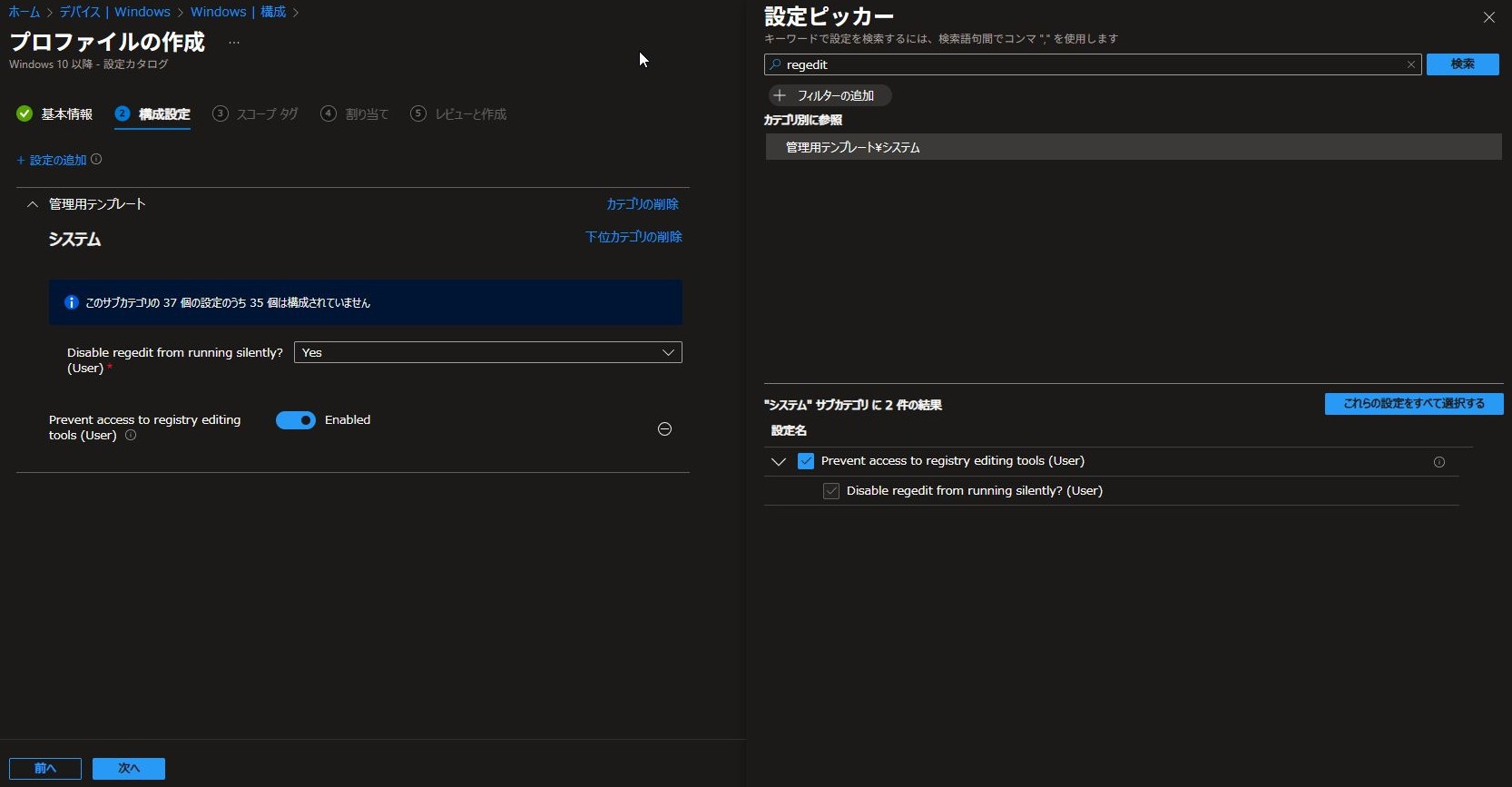 そのため、今回はIntuneでレジストリエディターの起動を禁止します。