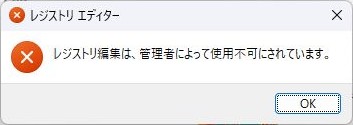 レジストリエディターを起動しようとすると下記のメッセージが表示されます。